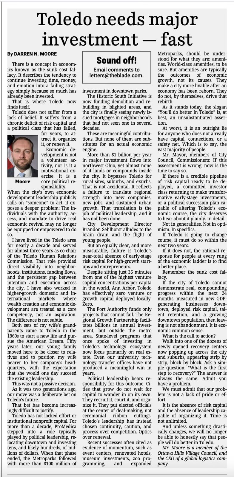 Darren has supported regional development initiatives since 2018, working alongside local economic development councils to help attract investment and quality job growth to the region. He believes strong local leadership means actively creating opportunity, listening to the needs of residents and businesses, and helping Northwest Ohio compete successfully on a national and international stage.